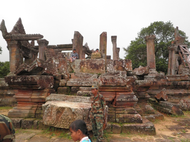 ニュースを見た方がよくわかりますが、以前からカンボジアのものだ、いや、タイのものだと争っていて、国際司法裁判所ではカンボジアのものと認定されています。そして、カンボジアが世界遺産すると、タイ側が怒って、話しあいでは解決できず、数ヶ月前も銃撃があったところです。